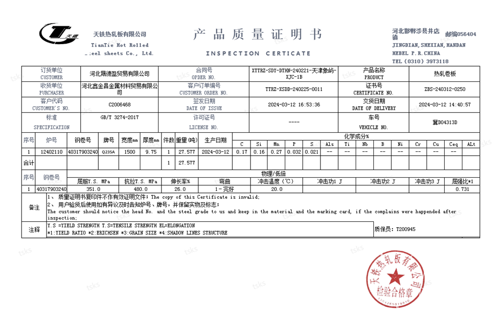板材質量證明